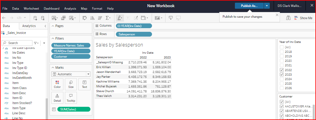 In Step 4 you created a new workbook connected to the _Sales_Invoice data source.