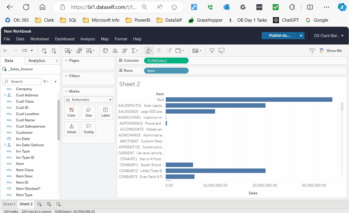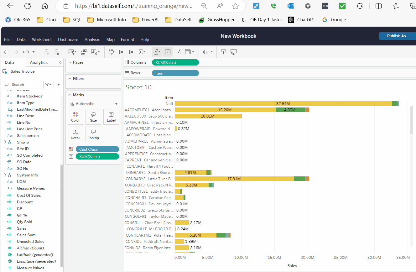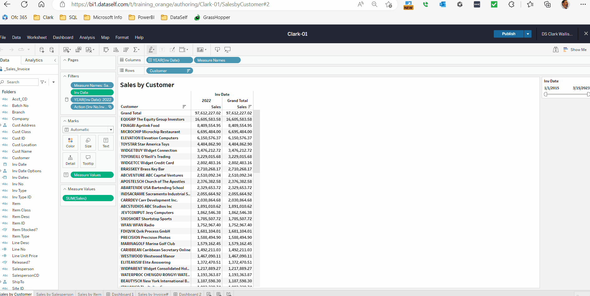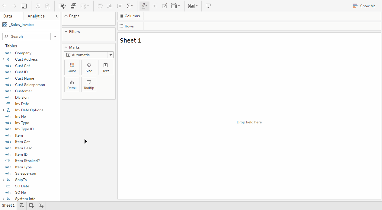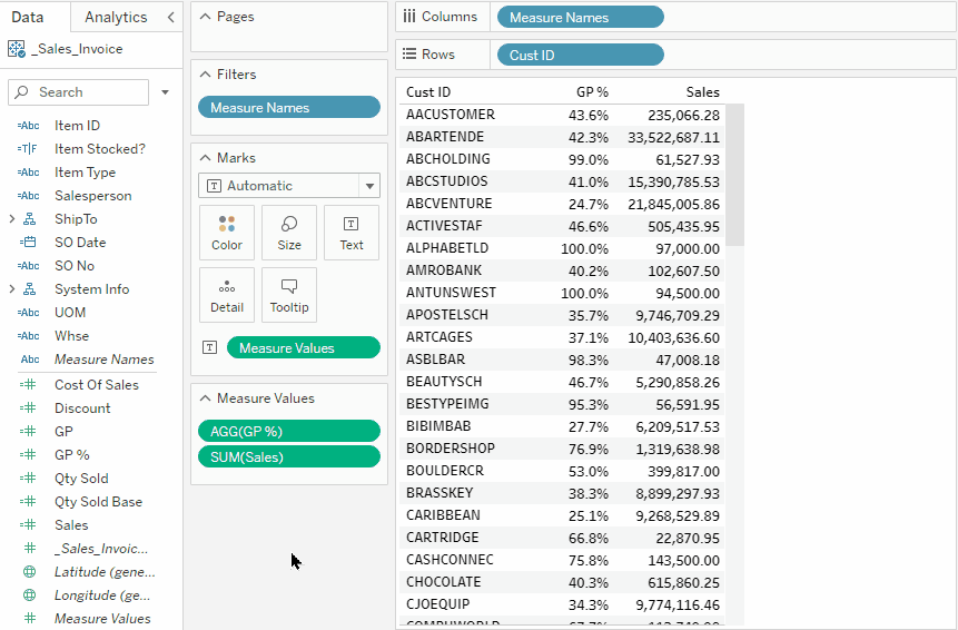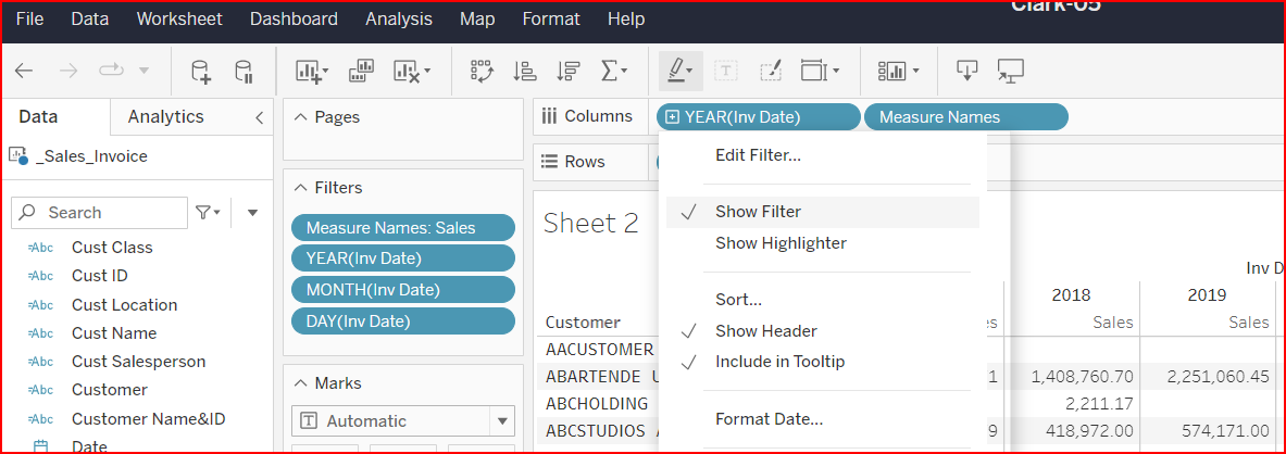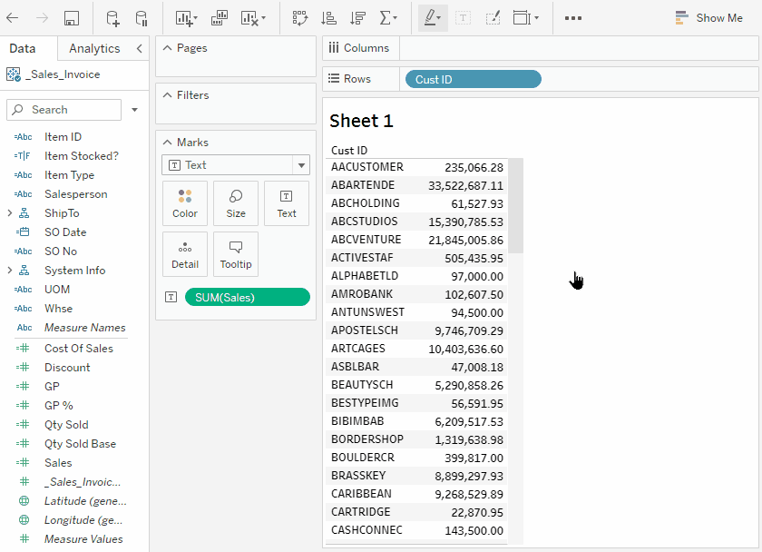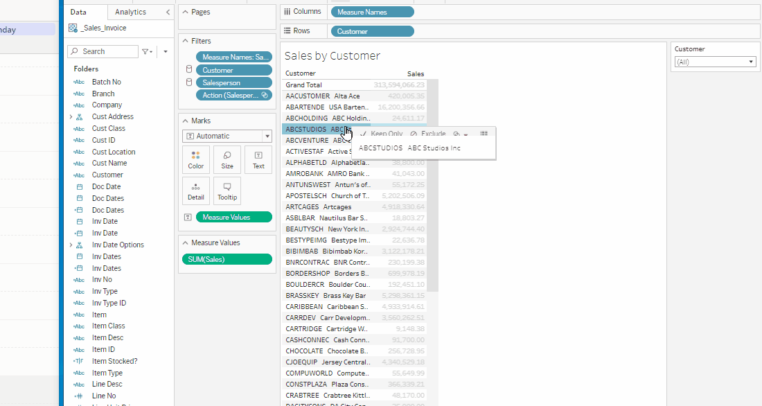 Method 2: Right click on the field, select Hierarchy > Add to Hierarchy > Customer.Invoice.ItemCreate a view showing Sales by Customer.