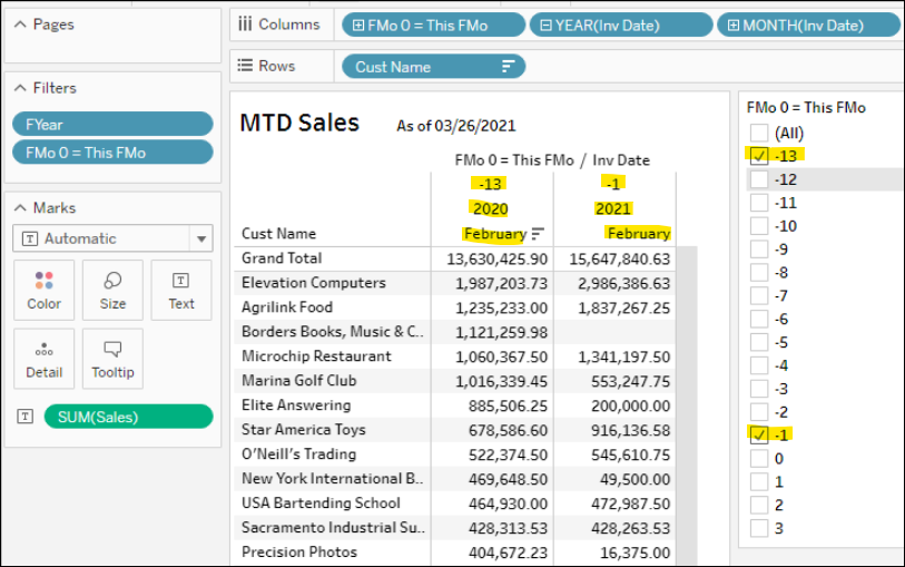 The report below shows sales in the prior month (-1) compared to the same month in the prior year (-13).
