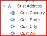 DataSelf has created some hierarchies built into the data source. For example, the _Sales_Invoice dataset has built in hierarchy for ShipTo address data. Examples of DataSelf built-in Hierarchies are: