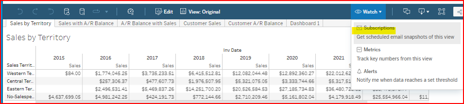 It’s also helpful when you set up viewer subscriptions to get an email of the view.
