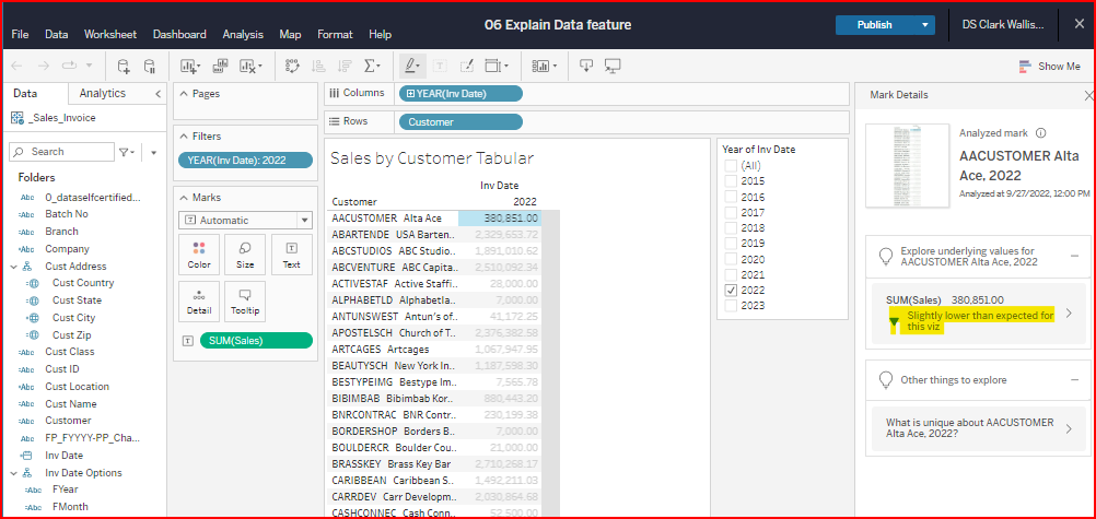 If Explain Data cannot analyze the type of mark selected, the Explain Data icon and context menu command will not be available. For more information, see Situations where Explain Data is not available.