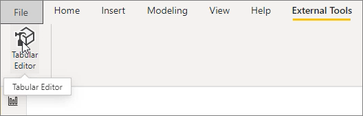 Once you install Tabular Editor, open your report in Power BI Desktop and launch Tabular Editor from the External Tools tab of the ribbon, as shown in the following image.