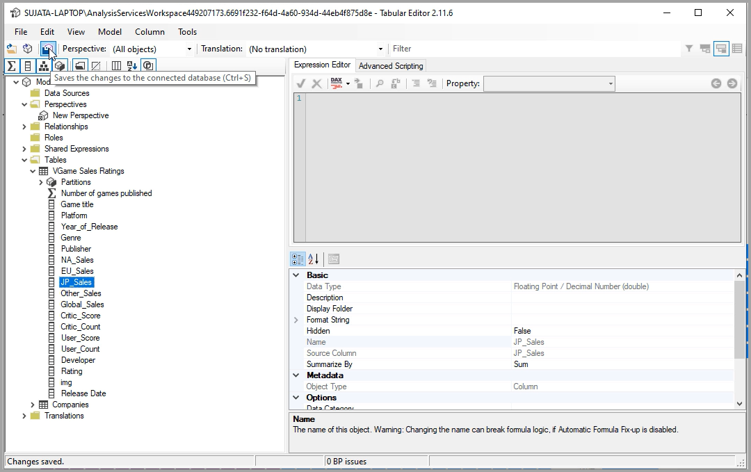 After you added all the fields you want, be sure to save your settings, both in Tabular Editor and then also in Power BI Desktop.