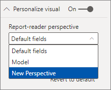 Once you save the new perspective to the model, and save the Power BI Desktop report, navigate to the Format pane for the page, where you see a new section for Personalize visual.