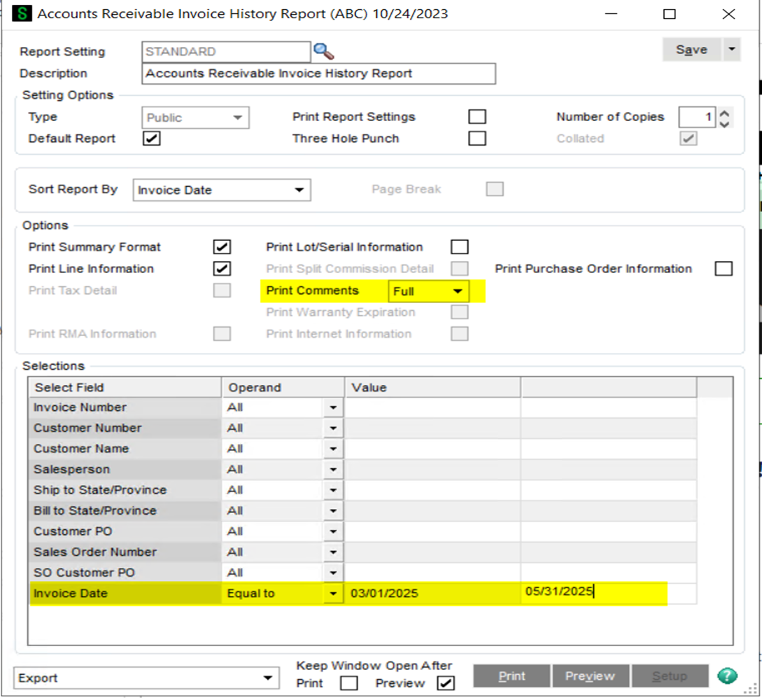Accounts Receivable Invoice Hist Report Sage ERP > Modules > Accounts Receivable > Reports > Accounts Receivable Invoice Hist Report | ![]() | |