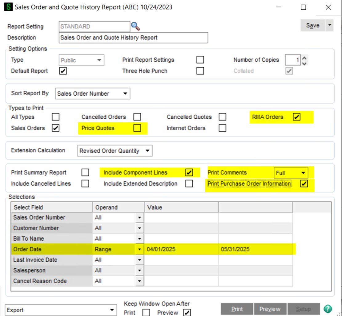 Sales order and Quote History Report Sage ERP > Modules > Sales Order > Reports > Sales order and Quote History Report | ![]() | |