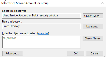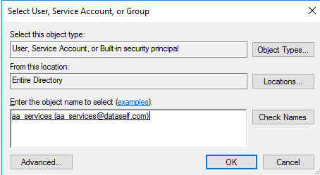 Enter user name aa_services and click Check Names