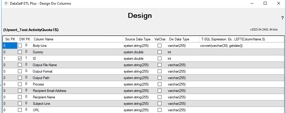 This stage is controlled by theThe T-SQL Expression column in the Design page is part of the transformation in this second & final step.