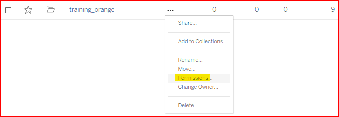 Permissions can be applied to a project. Click on the … actions icon as in the screenshot below.