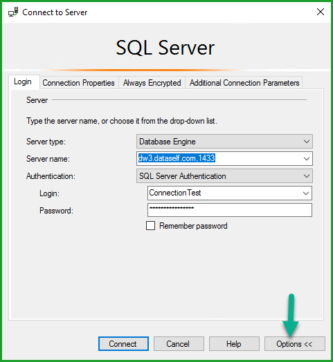 In Pictures: How to Test Connections to DataSelf with SSMS
