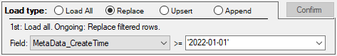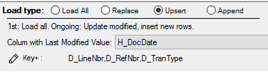When working with tables that can take quite a while to extracted in full, we recommend replacing records in the recent history (for instance, records of closed fiscal years no longer can change) and then switching back to Upsert: