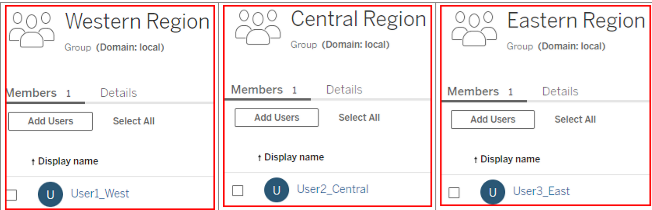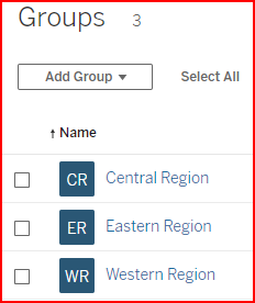 A Tableau Site Administrator can create groups. In this example I’ve created 3 groups: