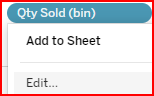 Item,Qty Sold,Sales.To create the Qty Sold Bin, right click on the Qty Sold field, select Create > Bins.